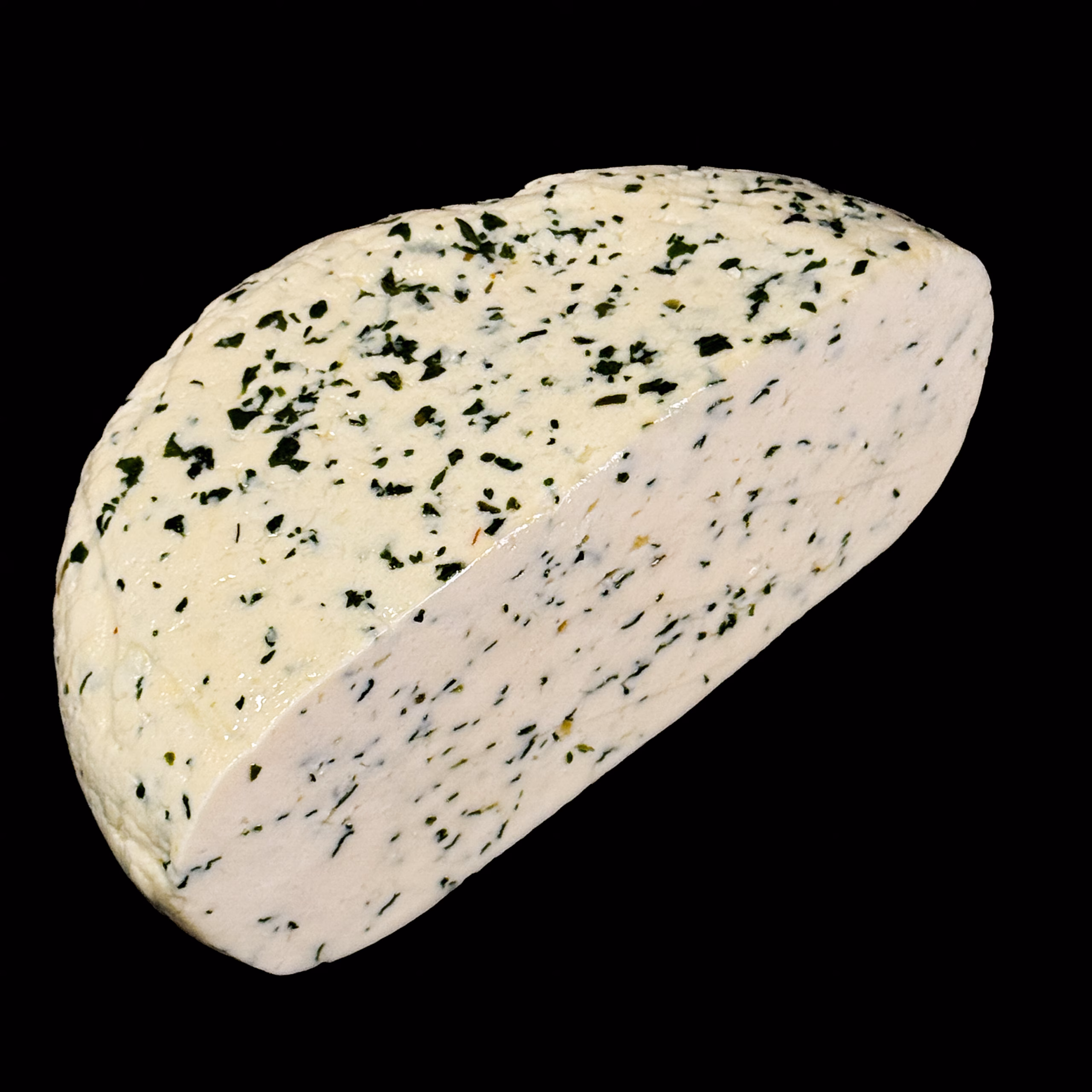 Ręcznie robiony ser z Podlasia z dodatkiem czosnku niedźwiedziego.